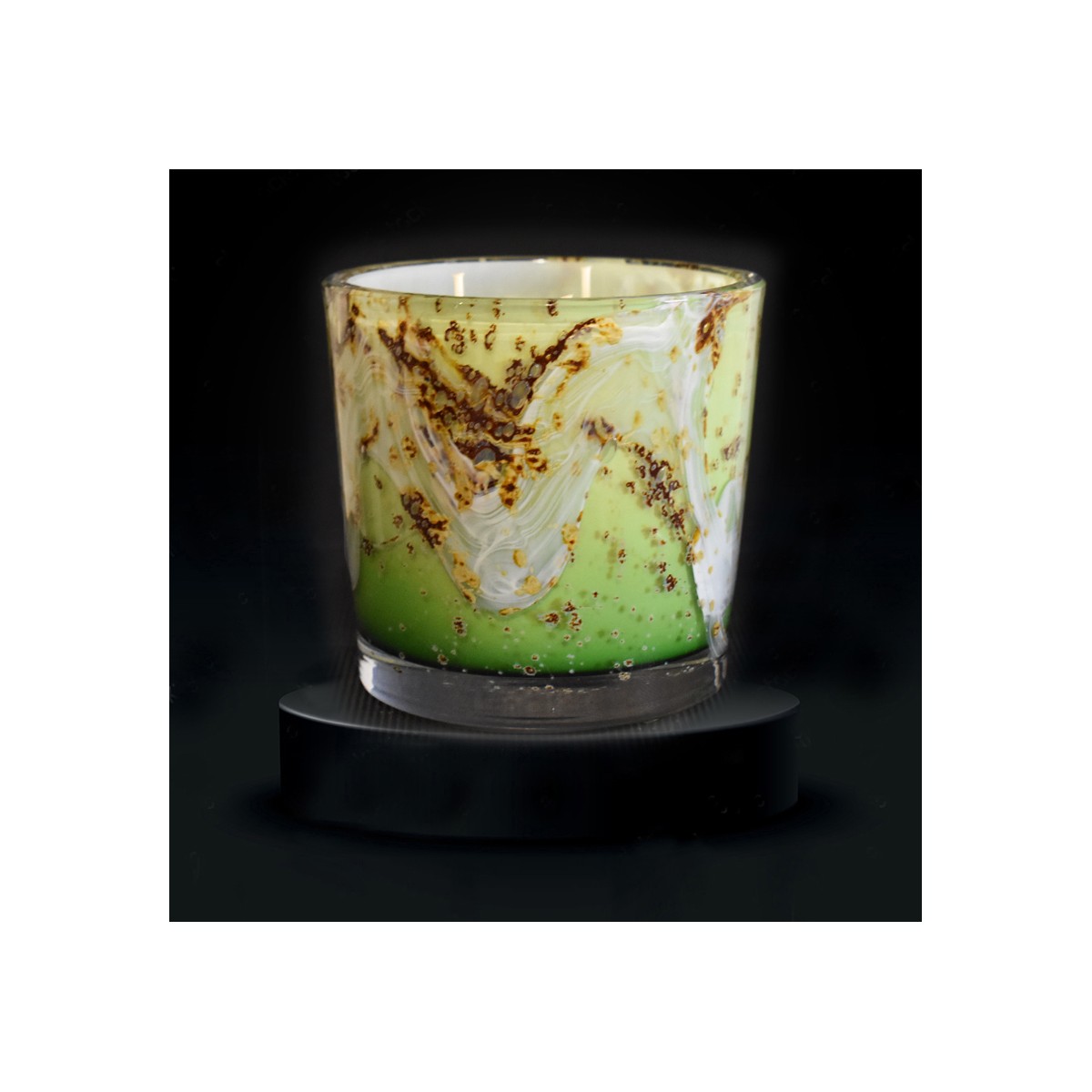 Chaque bougie est unique car son décor naît de la dispersion des couleurs lors de la fabrication à chaud.