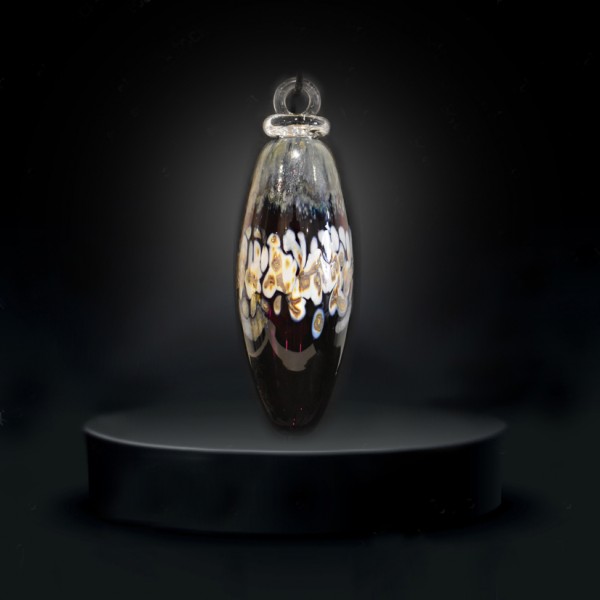 Dez Kerstbal geblazen door onze glasvakmannen is uniek door de kleurkeuze en de hete versmelting hiervan .