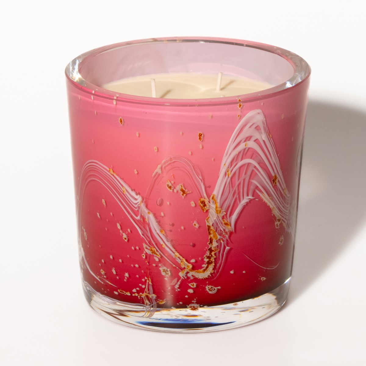 Elke kaars is uniek omdat de decoratie ontstaat door de dispersie van kleuren tijdens het warme fabricageproces.